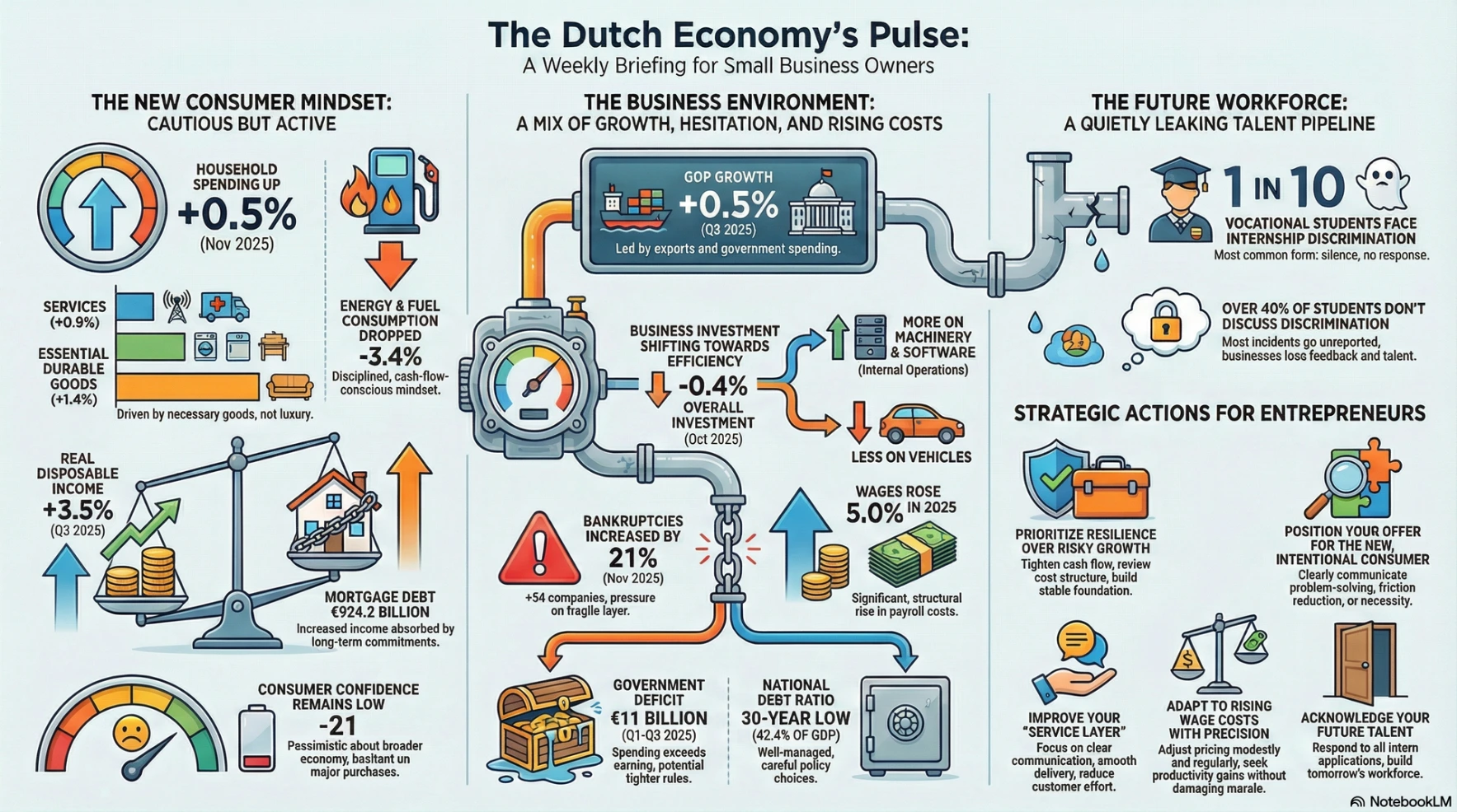 Fragility: Bankruptcies saw a 21 percent increase in November 2025 compared to October, suggesting that the "fragile layer" of the economy is under significant pressure.The Government FactorThe Dutch government is currently spending more than it earns, with a deficit of €11 billion in the first three quarters of 2025. While the debt ratio remains the lowest in 30 years at 42.4% of GDP, the growing deficit signals a future shift toward more selective subsidies, tighter tax rules, and increased compliance expectations for small businesses.