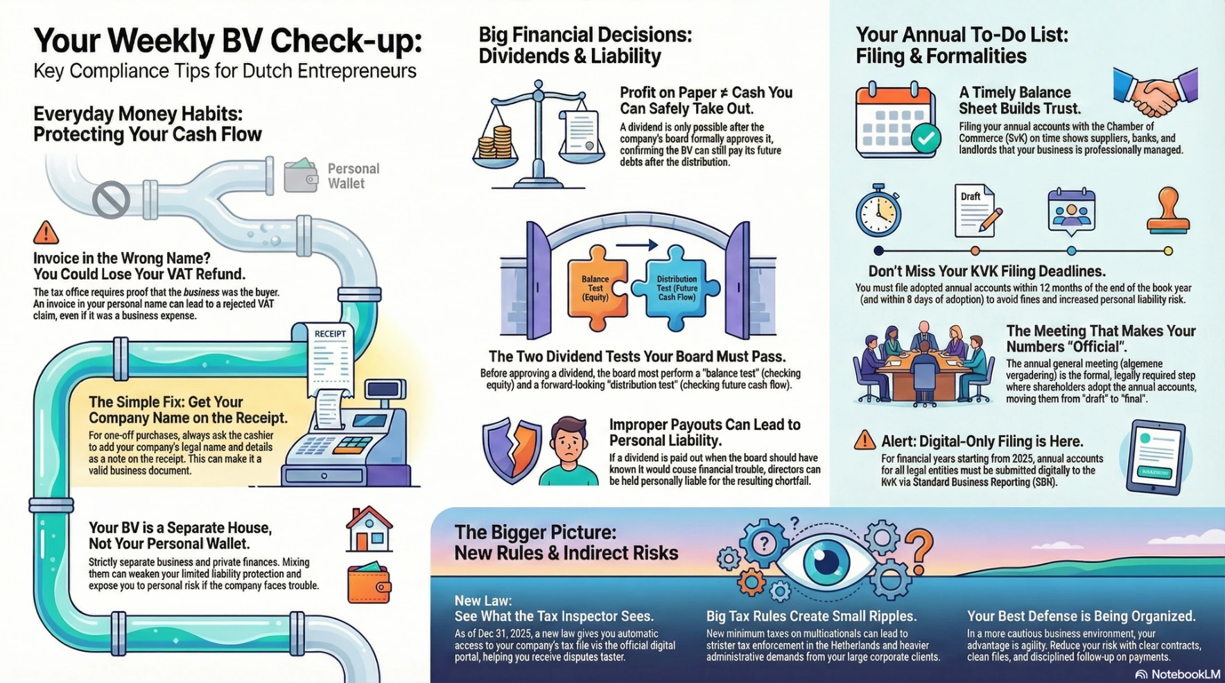 Under the administratieplicht (legal duty to keep records), a BV only shields your private life if you treat it as a separate entity with its own clear boundaries.